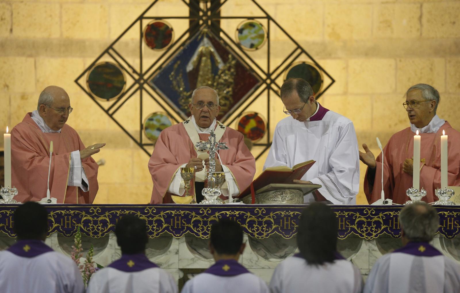 Pope Francis celebrates the Eucharist during a visit to St. Joseph Parish in Rome Dec. 14, 2014. (CNS photo/Paul Haring)