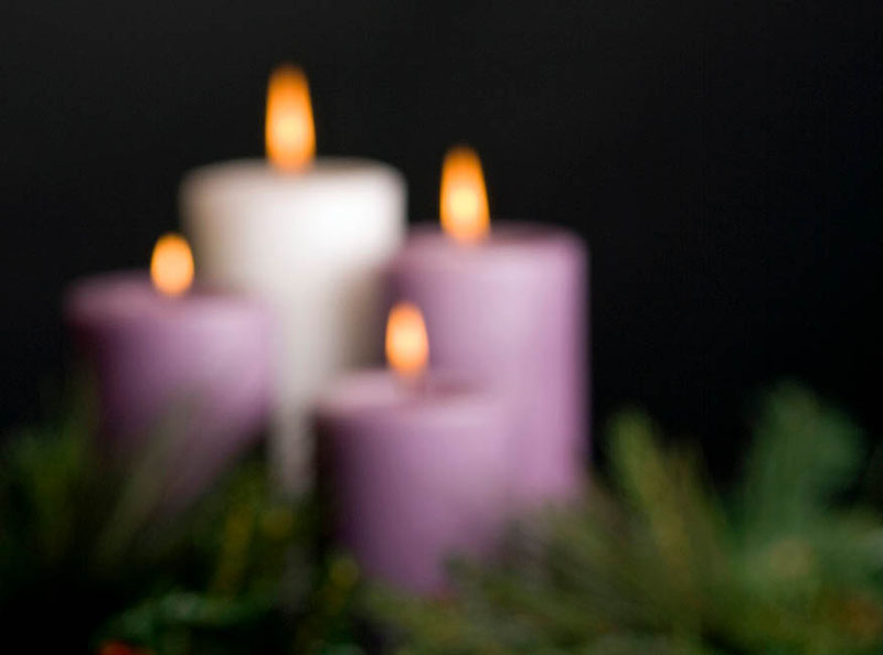 Four lit candles are set in a wreath for Advent. One candle is lit each Sunday leading up to Christmas. The fourth Sunday of Advent is Dec. 18. (CNS photo/Nancy Wiechec)