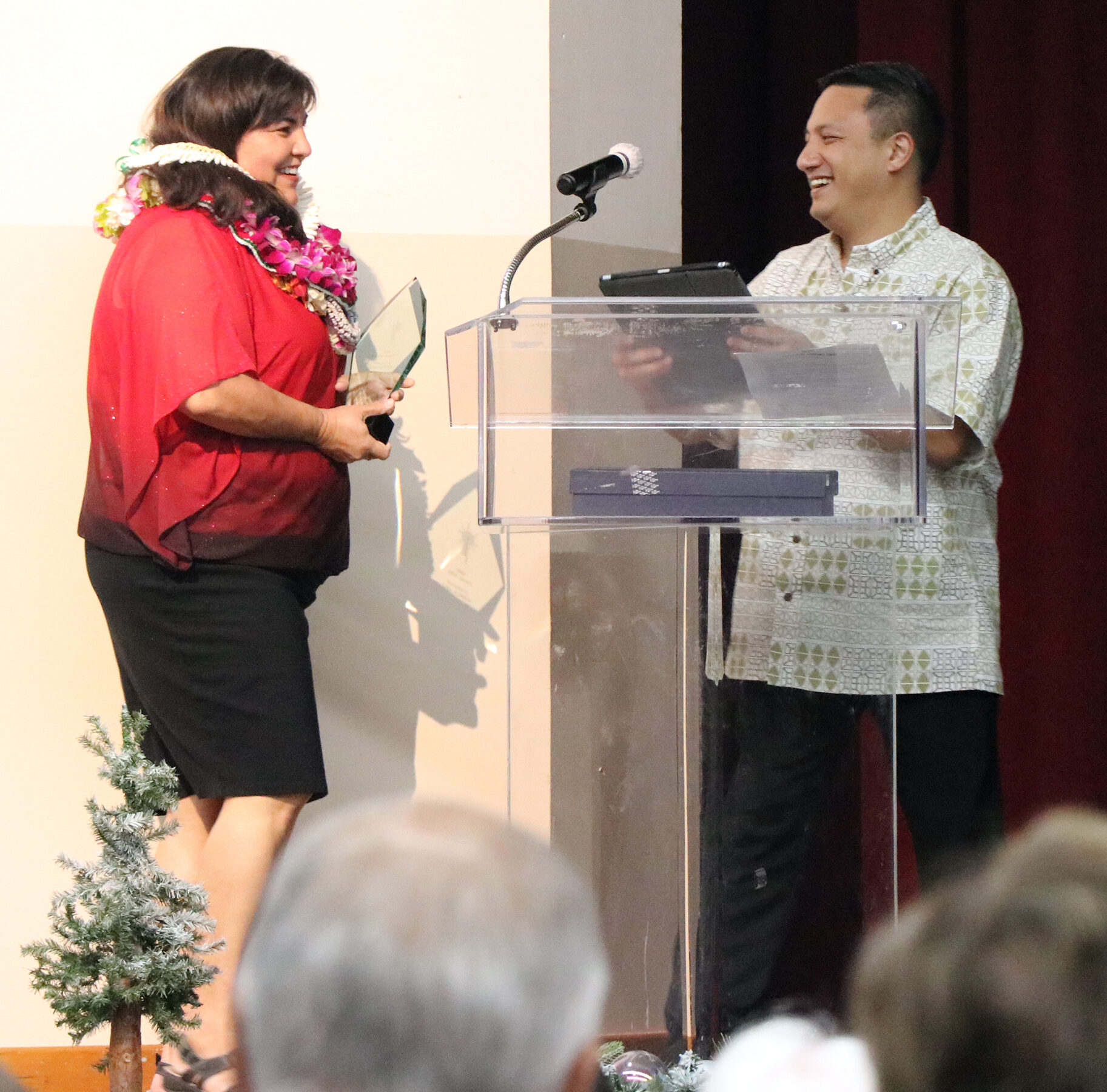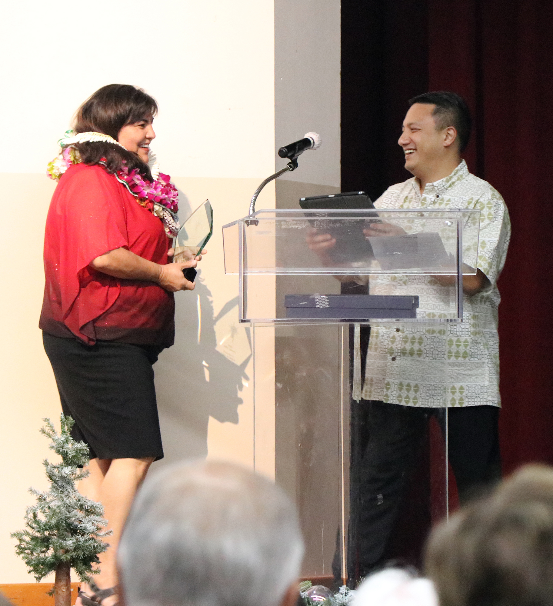 Lisa Gomes receiving the EPIC Ministry award Dec. 30. (HCH photo | Anna Weaver)