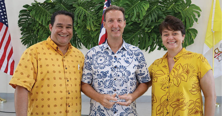 State Deputy Ryan K. Brown of the Hawaii State Council of the Knights of Columbus recently presented awards to brother knights and the chairwoman of the Lady Knights for their exemplary service to the Hawaii State Council during the 2021-2022 fraternal year. The awardees are Knight of the Year: Joseph D. Gage, Council 15594; State Officer of the Year: Angelito “Lito” Alvarez; Council of the Year: Kamiano Council 11743, St. Augustine; Lady of the Year: Mandy Thronas-Brown, Council 10190; Grand Knight of the Year: Alejandro G. Manansala, Council 17042; District Deputy of the Year: Paul D. Maple, District 4; Lifetime Achievement Award: (posthumously) Paul de Vos, Council 14620. Pictured from left are Brown, Gage and Thronas-Brown. (Photo courtesy of Robert Camilleri)