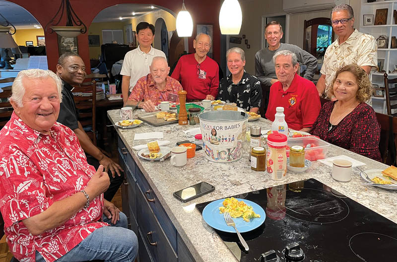 Several years ago, St. Anthony of Padua, Kailua, parishioner Louis (“Luigi”) Carnazzo, standing center, invited some of his church friends over to his house after daily Mass for breakfast, fellowship and faith sharing. The group has been gathering at “Luigi’s Bistro” ever since. In addition to sharing a meal and morning prayers, they also contribute to the “Bucks for Babies Bucket” that’s out at every get together. One hundred percent of the donations goes to Pearson Place Pregnancy Resource Center in Honolulu. The average monthly donation from the Bistro stands at $800. (Photo courtesy of Michael Weaver)