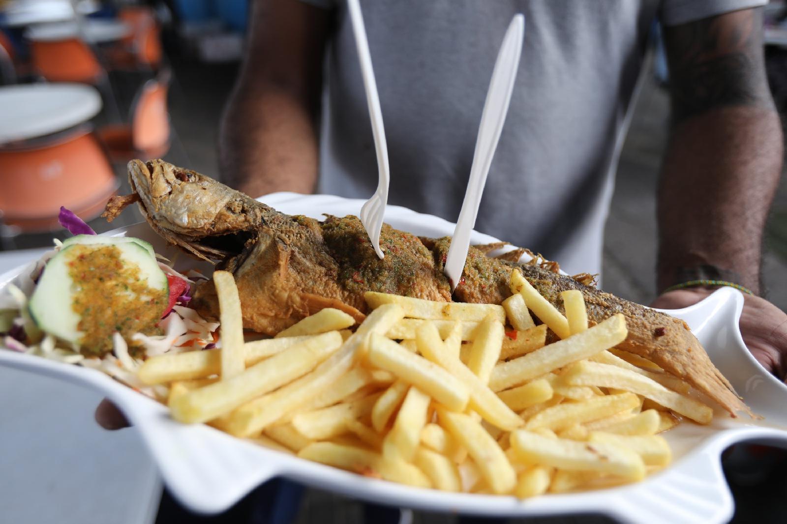 A platter of fried fish is displayed in a file photo at the Fish Market in Panama City. (CNS photo/Bob Roller)