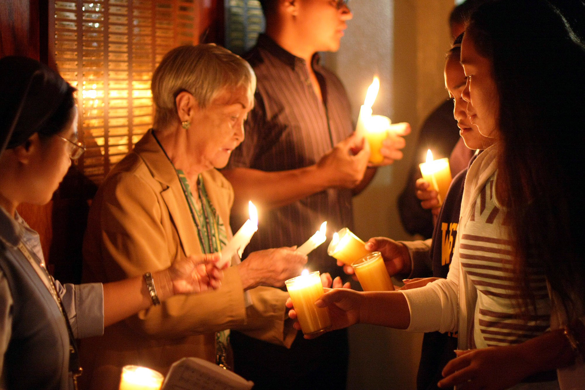 The liturgical directives are very clear: The Easter Vigil is to be celebrated at night, after darkness has covered the earth. During the Vigil we light a new fire and from it we light the Easter candle, that pillar of beeswax that signifies the victory of Christ over the darkness of sin and death. It is quite dramatic to enter a darkened church with a hundred flickering lights that all came from the one light of the Easter candle. It makes very clear that a “people who walk in darkness have seen a great light,” as we hear in the prophet Isaiah.