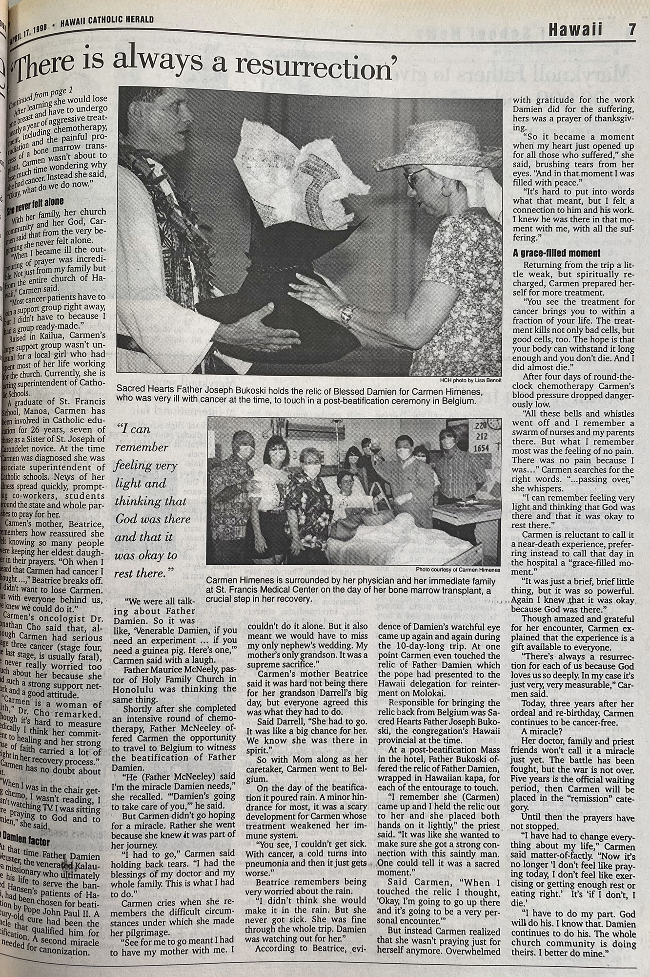 On a September day in 1995 Carmen Himenes lay in an isolation room in St. Francis Medical Center’s cancer ward.