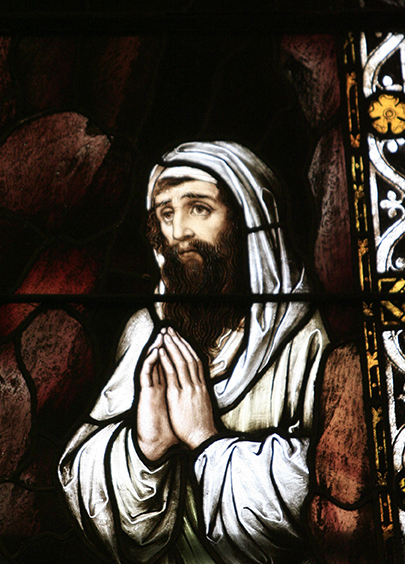 Lazarus is depicted in stained-glass at the Cathedral Basilica of St. James in Brooklyn, N.Y., Nov. 30, 2006. (CNS photo/Nancy Wiechec)
