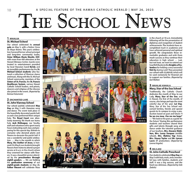 School News: May 26, 2023 05/22/2023 by Hawaii Catholic Herald Click here to see a pdf of the Hawaii Catholic Herald School News for May 26, 2023.