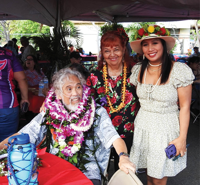 Father Alapaki Kim with well-wishers at his appreciation luau May 5 at St. Rita Church in Nanakuli. (Photo courtesy of Sebastian Lopez)