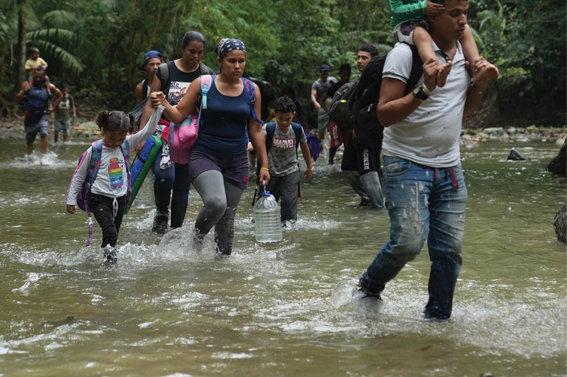 During the trek across the jungle, migrants risk being robbed by gangs who target them as they walk along remote trails. They also must wade across unpredictable turbulent rivers, where some have drowned.