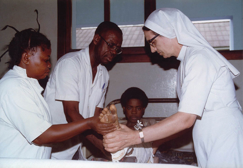 Sister Dinarosa Belleri of the Congregation of the Sisters of the Poor helps a patient in Mosango, Congo, in 1992. She was among six members of her congregation who died after contracting Ebola while caring for others suffering from the virus in Kikwit, Congo, in 1995. (CNS photo/courtesy Congregation of the Sisters of the Poor))
