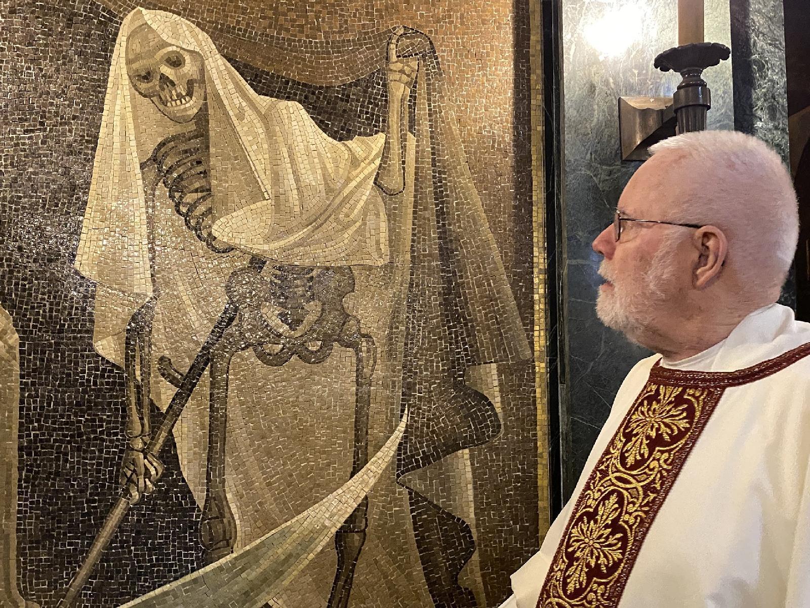 Father James Gardiner, a Franciscan Friar of the Atonement, looks at a piece of art in the Purgatory Chapel at the Franciscan Monastery of the Holy Land in Washington in this file photo from Nov. 2, 2021. (OSV News photo/Rhina Guidos, CNS)