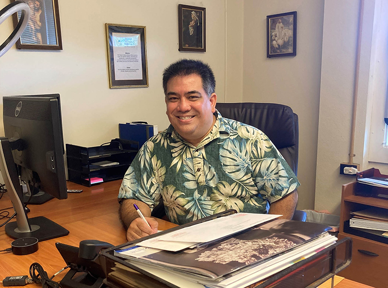 Dr. Llewellyn Young, Superintendent of Hawaii Catholic Schools, in his office at St. Stephen Diocesan Center(Photo courtesy of the Hawaii Catholic Schools office)