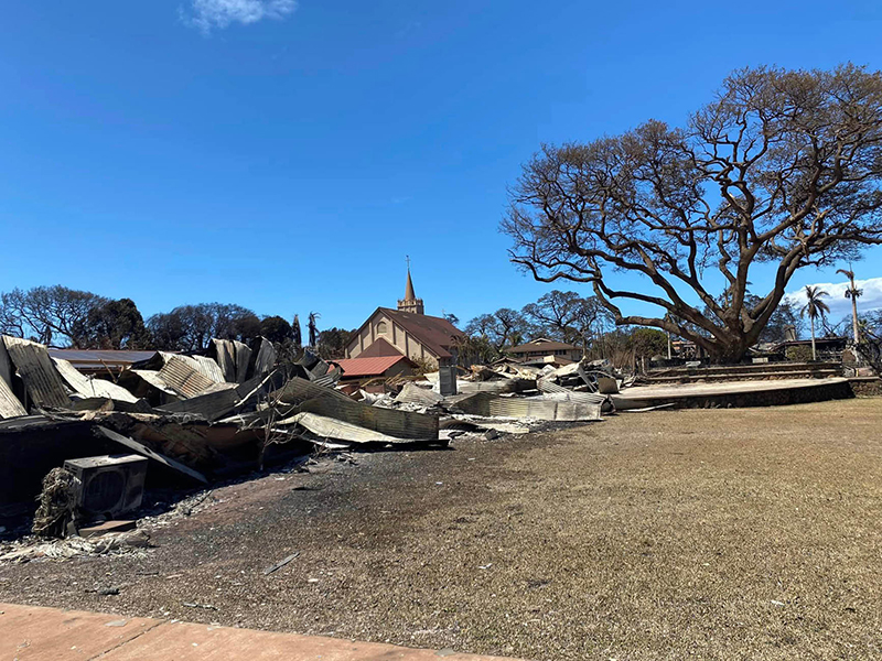 “The aftermath of this fire is an unimaginable time of suffering and mourning,” said Msgr. Terrence Watanabe, pastor of St. Anthony Parish, Wailuku, and vicar of Maui and Lanai. “Our faith is being tested as never before. Nevertheless, we draw inspiration from seeing that our beloved Maria Lanakila Church still stands tall. It’s a miraculous symbol of God’s mercy and of strength overcoming adversity.”