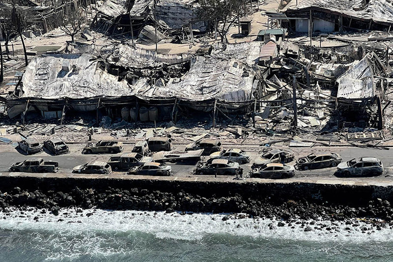The shells of burned houses, buildings and cars are what’s left Aug. 11, 2023, after wildfires destroyed Lahaina. (OSV News photo/Hawai’i Department of Land and Natural Resources handout via Reuters)