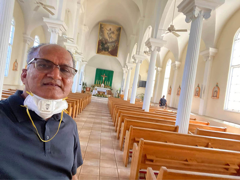 Father Nadooparambil is staying with a parishioner, and two Missionaries of Faith Sisters are staying at another parish.