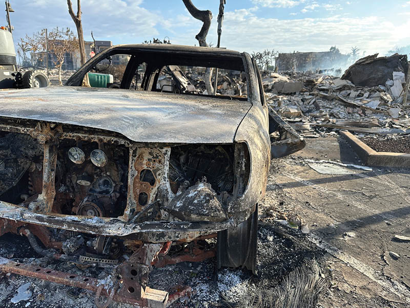 A burned car is seen at the Ho’onanea condominium complex, in Lahaina, Maui, Hawaii, Aug. 10, 2023. (OSV News photo/Jorge Garcia, Reuters)