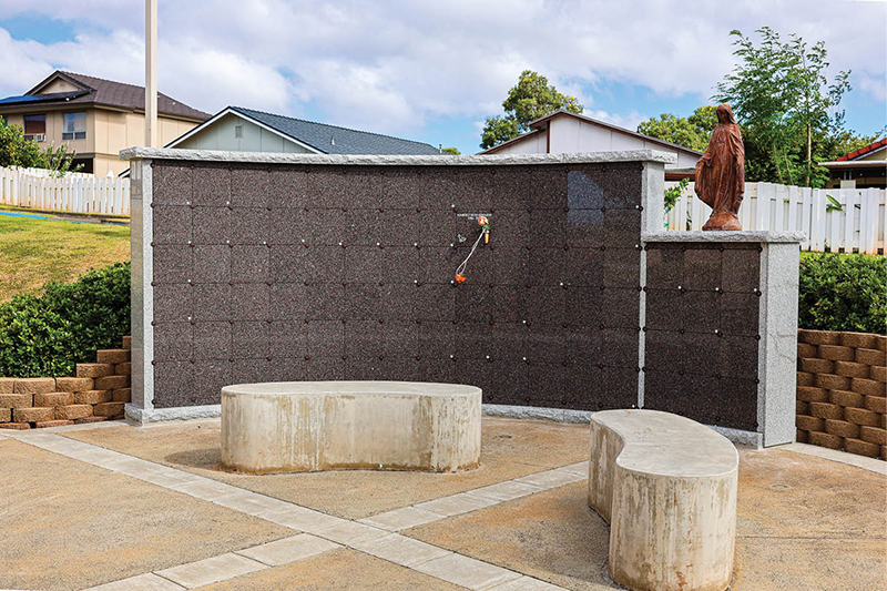 The first columbarium in the diocese was a 60-niche polished granite structure installed last year on an exterior church wall of St. Ann in Kaneohe. Expect more. Our Lady of Good Counsel in Pearl City, St. Anthony in Wailuku, Maui, and St. John Apostle and Evangelist in Mililani are all in various stages of procuring a final resting place for the ashes of their loved ones.