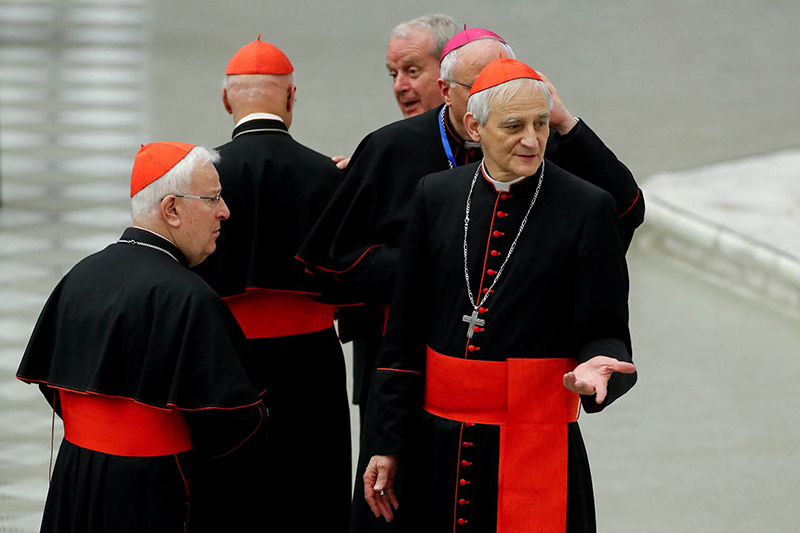 Cardinal Matteo Zuppi gestures after a meeting between Pope Francis and delegates of the Italian Synodal Path in Paul VI hall, at the Vatican, May 25, 2023. (OSV News photo/Remo Casilli, Reuters)