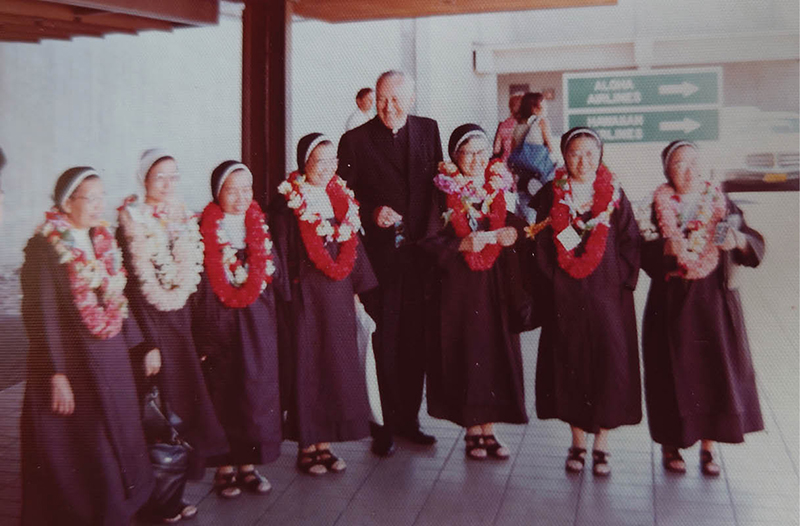 “A journey of a thousand miles begins with a single step,” wrote the 6th century Chinese philosopher Lao Tzu. Fifty years ago, on Oct. 25, 1973, seven Carmelite nuns took that single step leaving the familiarity of their monastery walls in Stanley, Hong Kong, to answer Jesus’ invitation in Matthew 9:19, “everyone who has given up house or brothers or sisters or father or mother or children or lands for the sake of my name will receive a hundred times more, and will inherit eternal life.” Some 5,544 miles later, across the Pacific Ocean, Mother Mary Agnes Tse, Sister Mary Angel Wong , Sister Teresita Tam, Sister Caroline Chow, Sister Marie Tang, Sister Agnes Marie Wong and Sister Agnella Iu arrived in Honolulu to found Hawaii’s Carmel of the Holy Trinity.