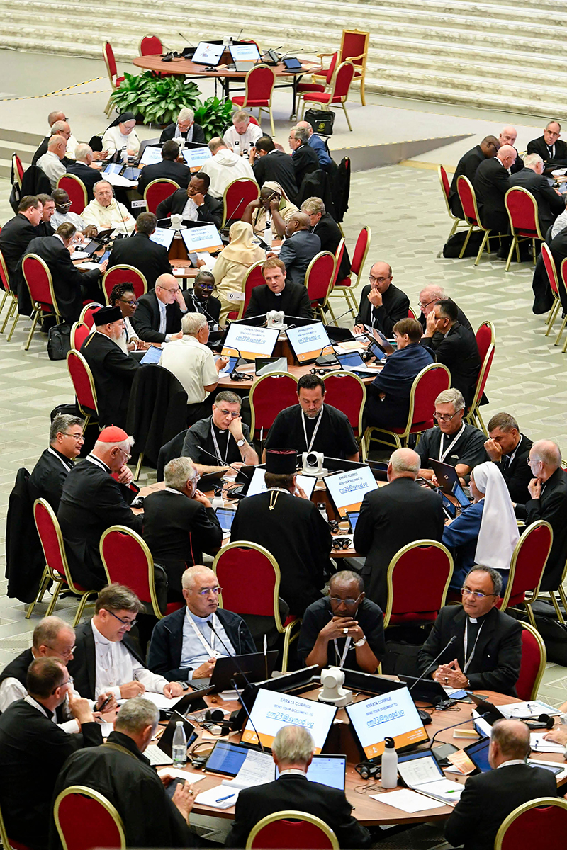 Members of the assembly of the Synod of Bishops, organized into 35 groups based on language, begin their small-group discussions Oct. 5, 2023, in the Paul VI Audience Hall at the Vatican. (CNS photo/Vatican Media)