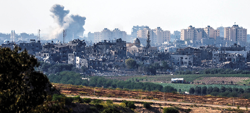 Smoke rises amid destroyed buildings in the Gaza Strip as seen from Israel’s border with the Gaza Strip in southern Israel Oct. 18, 2023. (OSV News photo/Amir Cohen, Reuters)