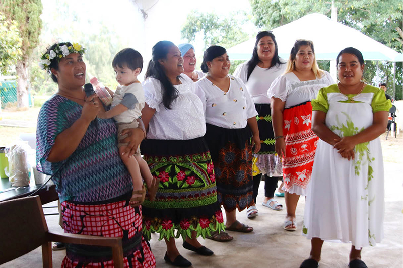 Micronesian women sing a traditional song at the Hawaii gathering marking National Vocation Awareness Week, Nov. 11 at Paewalani house in Kaneohe. (Courtesy of Dann Ebina)