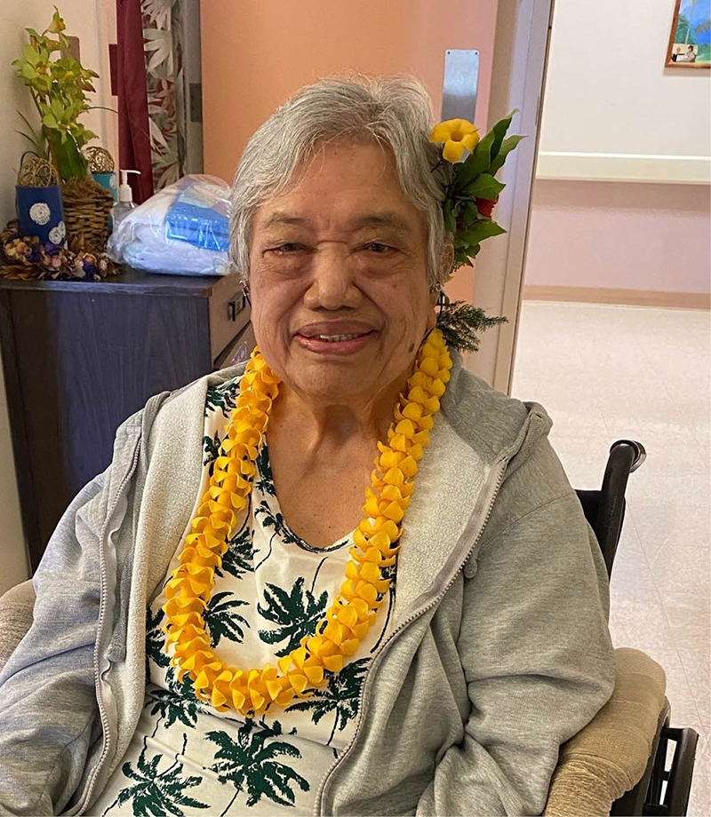 Ivy Kahilihiwa at the Kalaupapa Care Home in 2021. (Photo courtesy of Jessica Sanchez)