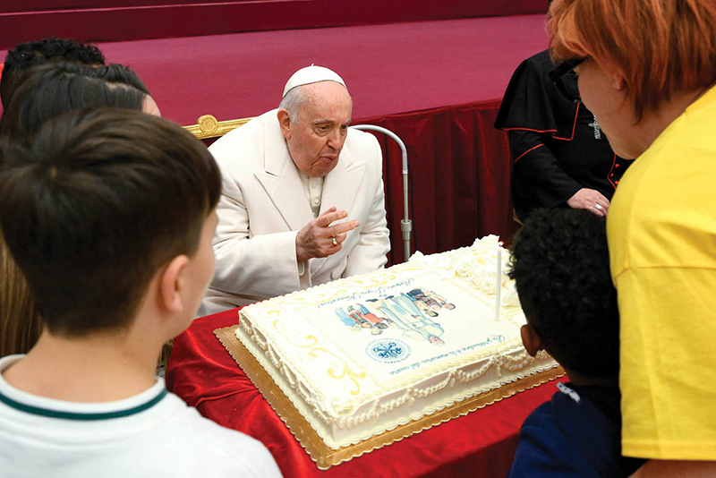 Photo: Happy birthday to you 12/20/2023 by Hawaii Catholic Herald Pope Francis blows out the candle on his birthday cake during an audience with children assisted by the Vatican’s pediatric clinic in the Paul VI Hall Dec. 17, 2023, his 87th birthday. (CNS photo/Vatican Media)