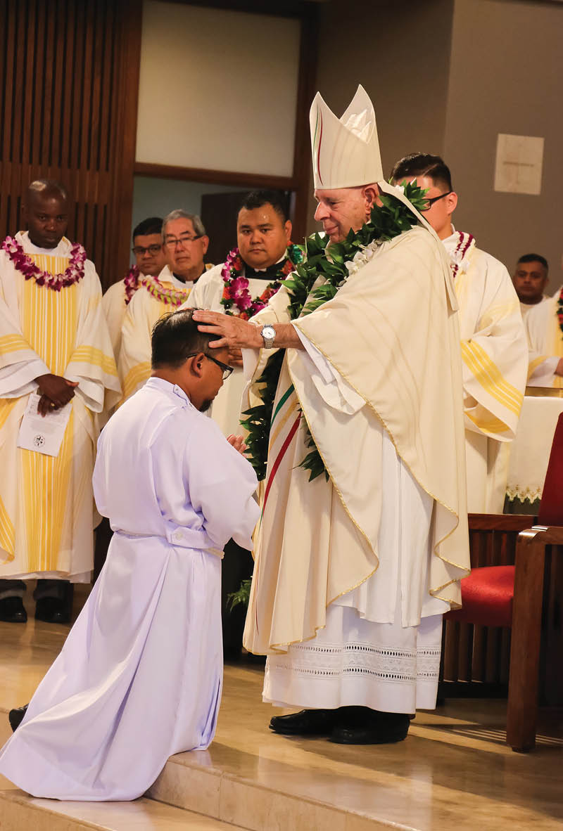 Their ordinations by Bishop Larry Silva — six on Jan. 20 at the Co-Cathedral of St. Theresa and two at St. Joseph Church in Makawao, Maui, on Jan. 27 — were the culmination of a five-year formation process.