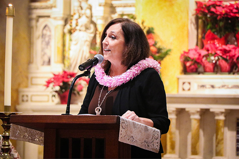 Eva Andrade delivers her Red Mass talk Jan. 16 in the Cathedral Basilica of Our Lady of Peace. (HCH photo | Jennifer Rector)