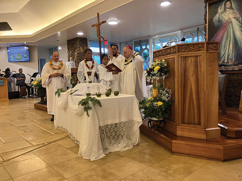 And for the Oahu and Molokai Vicariate, the chrism Mass took place March 26 at the Co-Cathedral of St. Theresa in Honolulu.