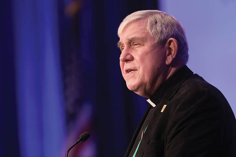 Archbishop Jerome E. Listecki of Milwaukee, who reached the mandated retirement age of 75 this month, speaks during a session of the fall general assembly of the U.S. Conference of Catholic Bishops in Baltimore. (Bob Roller / CNS / 2021)