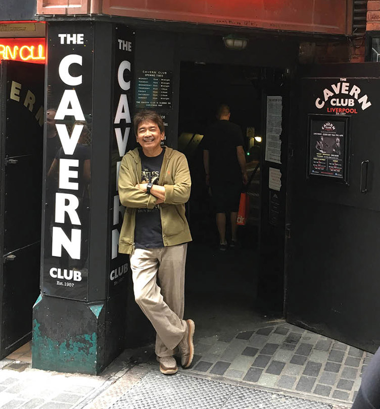 Beat-lele musician and St. John Apostle and Evangelist parishioner Manolo Quiason, aka Nolet, stands outside the legendary Cavern Club where The Beatles first made a name for themselves. (Courtesy Manolo Quiason)