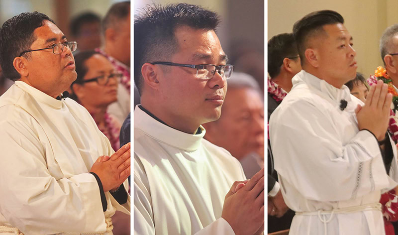 On May 24, Bishop Larry Silva will ordain Deacons Kurt Meyer, Hai “Francis” Pham and Anthony Tran at the Co-Cathedral of St. Theresa in Honolulu.