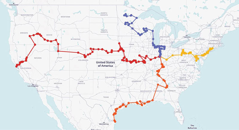 The routes began in New Haven, Connecticut (St. Elizabeth Ann Seton Route); Brownsville, Texas (St. Juan Diego Route); San Francisco (St. Junipero Serra Route); and northern Minnesota (Marian Route). Each will be traveled by six perpetual pilgrims who are young adults selected by congress leaders; priest chaplains; and seminarians. They will be accompanying the Eucharist, often held in a monstrance specially designed for the pilgrimage.