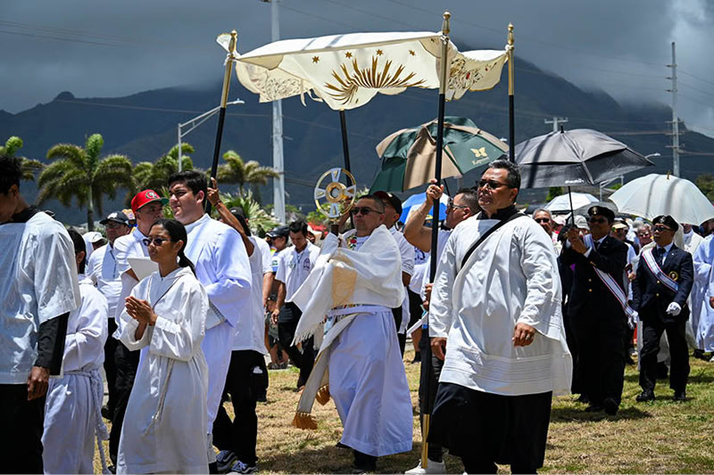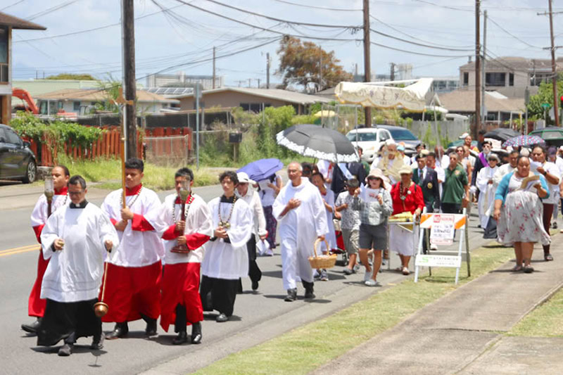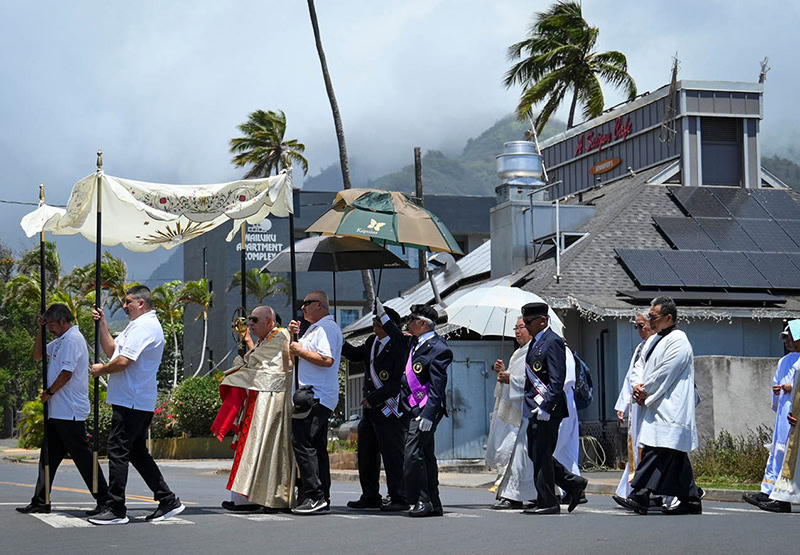 On Corpus Christi, the feast of the body and blood of Christ, parishioners on Maui and Oahu took part in Eucharistic processions.