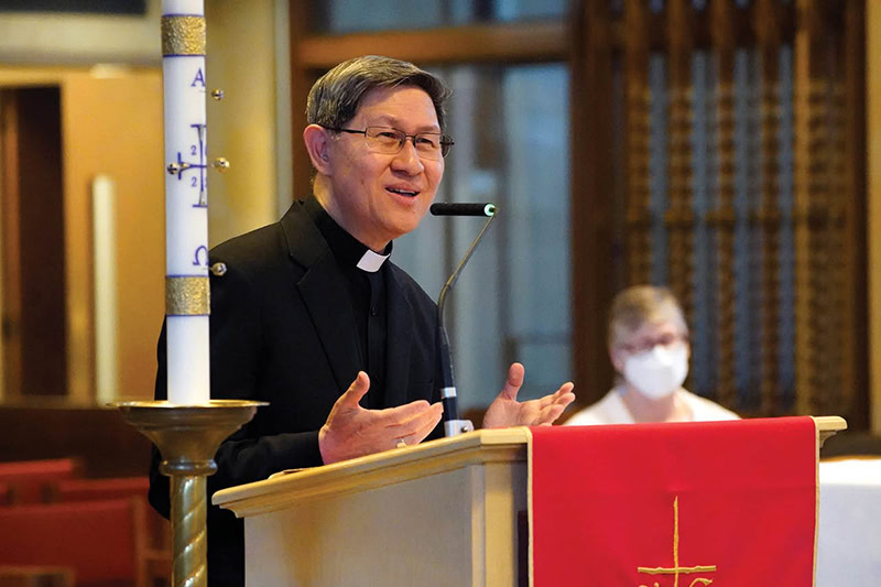 Cardinal Luis Antonio Tagle, then prefect of the Congregation for the Evangelization of Peoples, speaks during a mission sending ceremony at the Maryknoll Society Center in Maryknoll, New York. Cardinal Tagle will be in Indianapolis this month as the Vatican’s special envoy to the National Eucharistic Congress, and will also attend a meeting of Asian and Pacific Island Catholics prior to the congress. (Gregory A. Shemitz / OSV News / 2022)