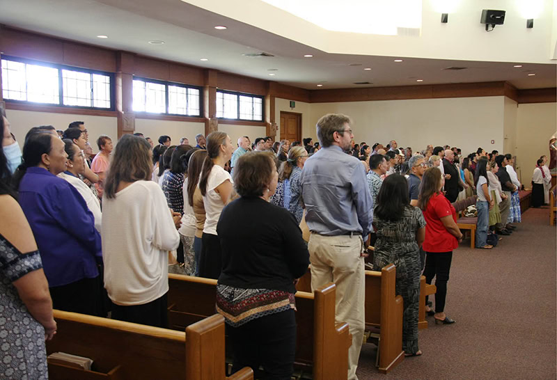 educators from Catholic schools across the state gathered Aug. 15 at St. Ann Church in Kaneohe for Mass honoring the Solemnity of the Assumption of the Blessed Virgin Mary as well as the start of the academic year. (Celia K. Downes / Hawaii Catholic Herald)