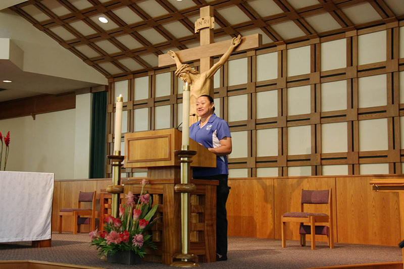 Before Mass began, Associate Superintendent Mandy Thronas-Brown welcomed Tonata Lolesio, principal of Sacred Hearts School, to provide an update on the school.