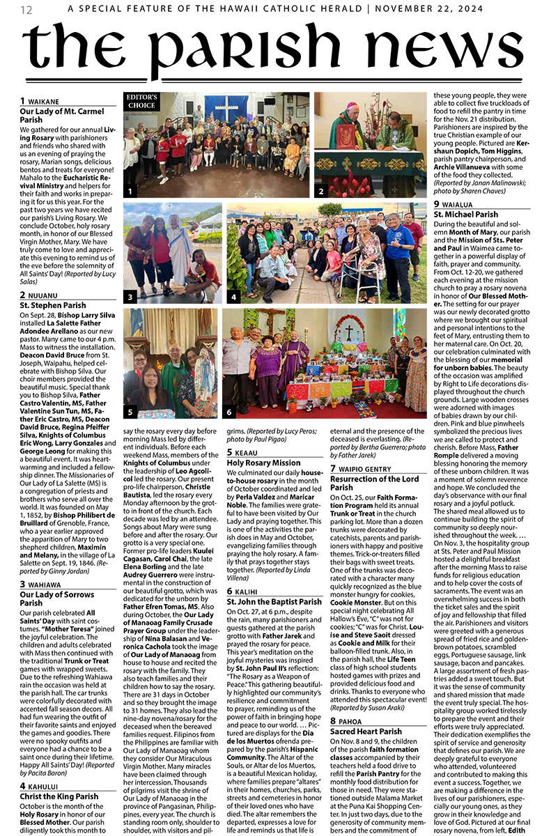 The Parish News: Nov. 22, 2024 11/20/2024 by Hawaii Catholic Herald Click here to read the latest edition of The Parish News.