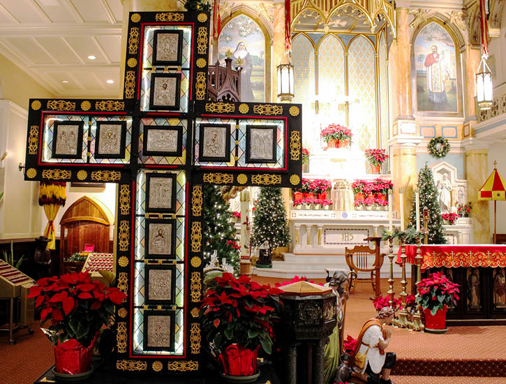 The Diocese of Honolulu’s Jubilee cross stands in the Cathedral Basilica of Our Lady of Peace in downtown Honolulu. The diocese also has a traveling cross that will be brought to parishes throughout the year. (Courtesy Anthony Selvanathan)