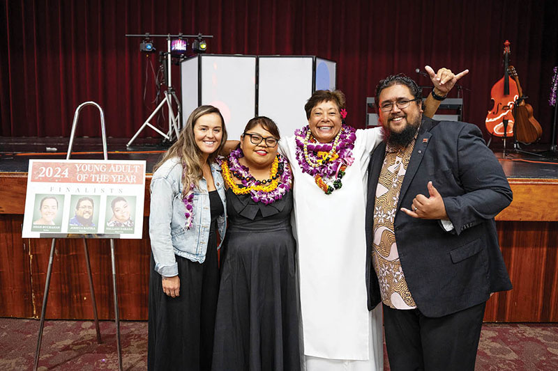 Sister Celeste “CC” Cabral, second from right, took a photo with the finalists for EPIC Ministry’s Young Adult of the Year award: Meagan “Megs” Buchanan, left, winner Nellani Tabada and Joshua Kapika. (Courtesy EPIC Ministry)