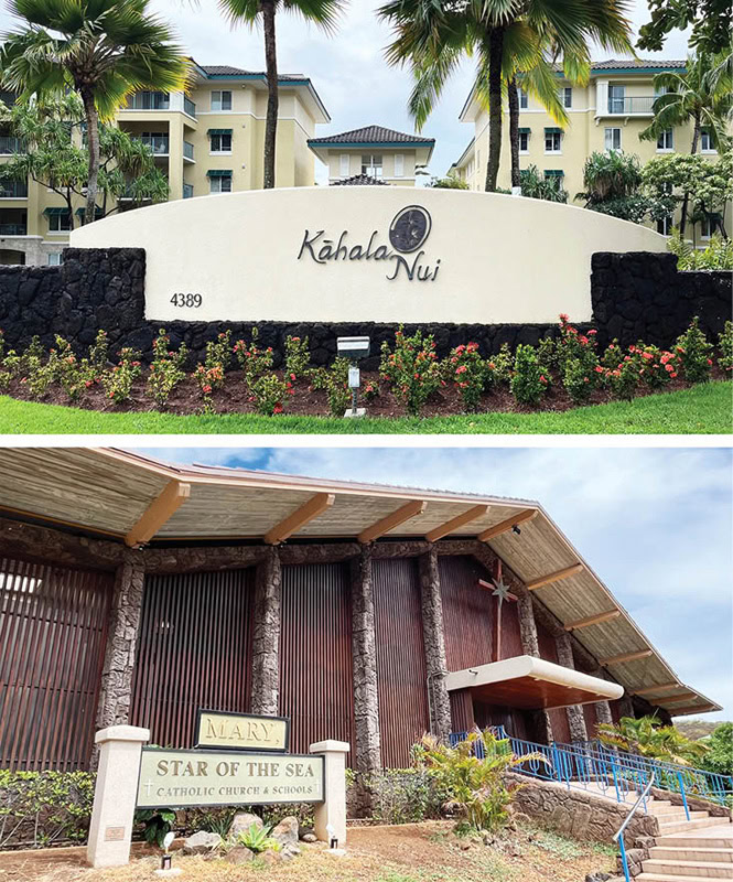 Kahala Nui, top, and Mary, Star of the Sea Church and School. (Photos by Celia K. Downes / Hawaii Catholic Herald)