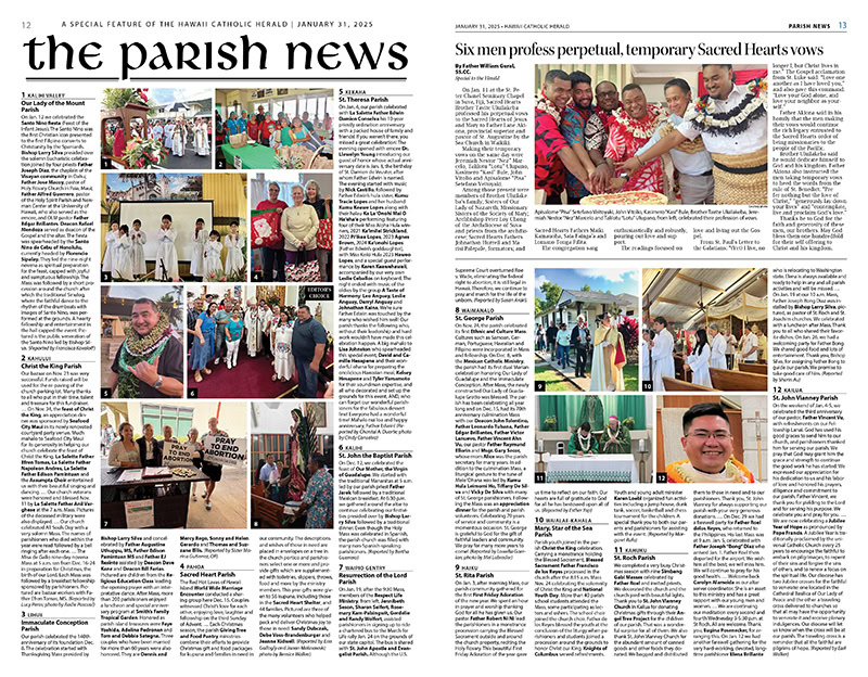 The Parish News: Jan. 31, 2025 01/29/2025 by Hawaii Catholic Herald Click here to read the latest edition of The Parish News.