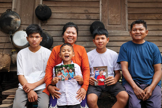 Hongkham Phengsaphone, a mother of six, with three of her sons and her husband in Laos. She became a mentor in her community and helped ensure that children have a warm meal. (Benny Manser / Catholic Relief Services)