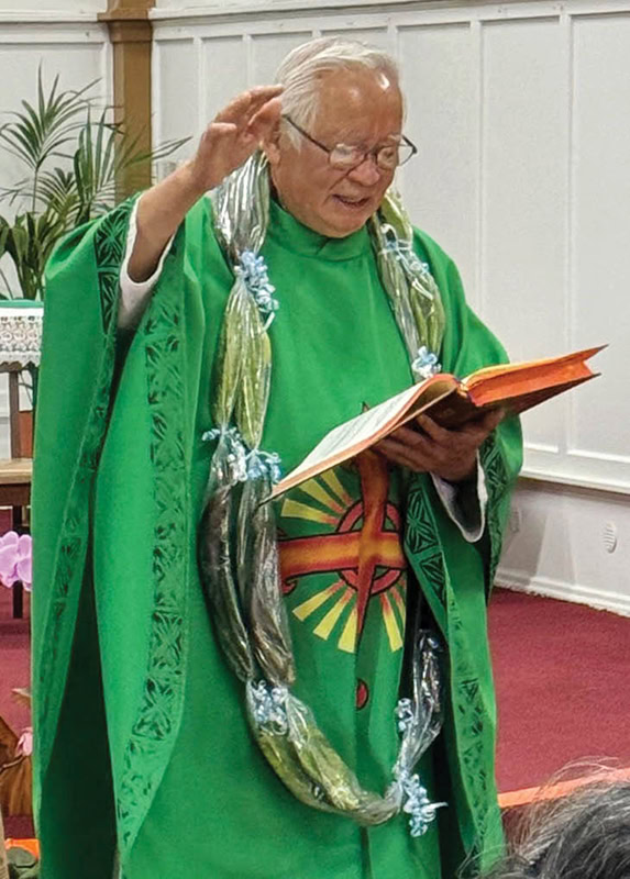 At Holy Rosary Church in Paia, Maui, where he began his time in Hawaii in 2009, and later at Sacred Heart Church in Hawi, Hawaii Island, he introduced Filipino traditions and culture. He took parishioners to the Philippines on pilgrimages, installed stained-glass windows featuring Filipino saints and brought back gifts after his vacations at home.