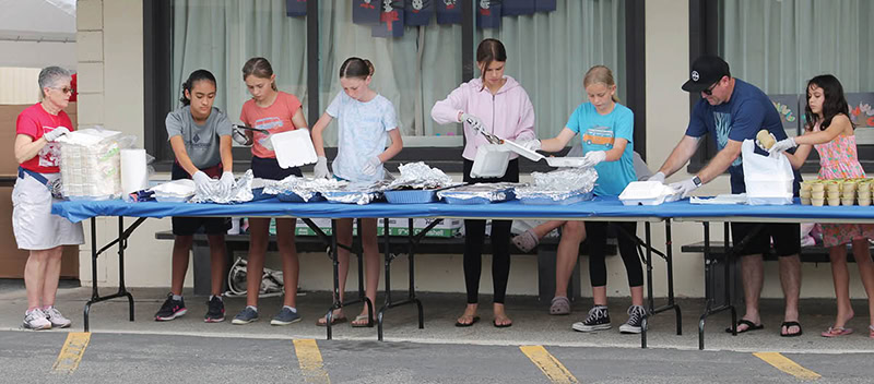 Volunteers at a previous fish fry pack up meals in the drive-thru area. (Courtesy photo)