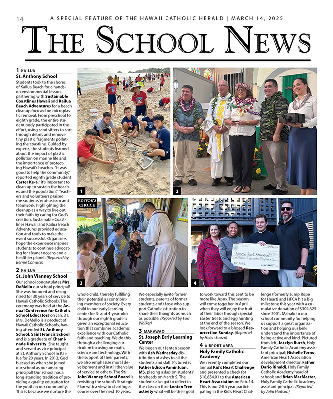 The School News: March 14, 2025 03/12/2025 by Hawaii Catholic Herald Click here to read the latest edition of The School News.