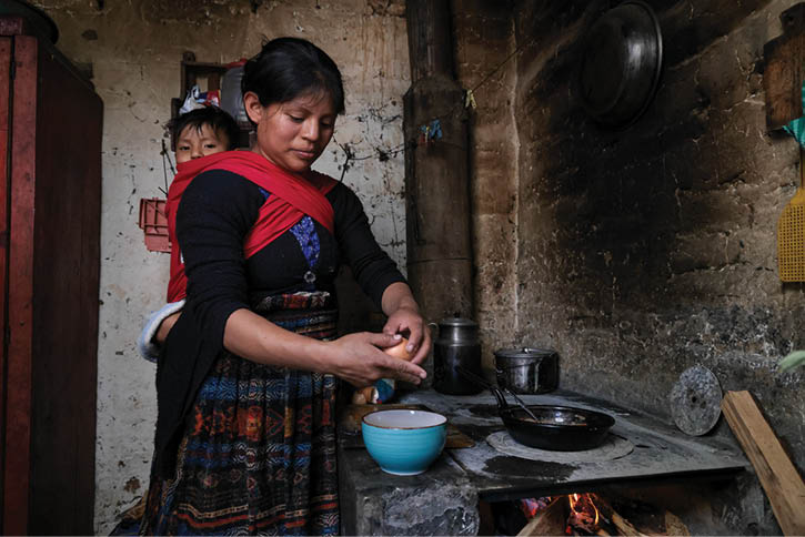 Ana Belen Mulul Yat, 27, carries her son Joseph Gael, 1, as she prepares lunch at home in Santa Maria Chiquimula, Guatemala. (Catholic Relief Services)