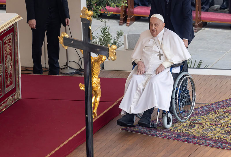 Although he kept to his prescribed recovery and was not seen in public, two weeks after his release from the hospital, Pope Francis made a surprise appearance at the conclusion of the closing Mass for the Jubilee of the Sick and Health Care Workers.