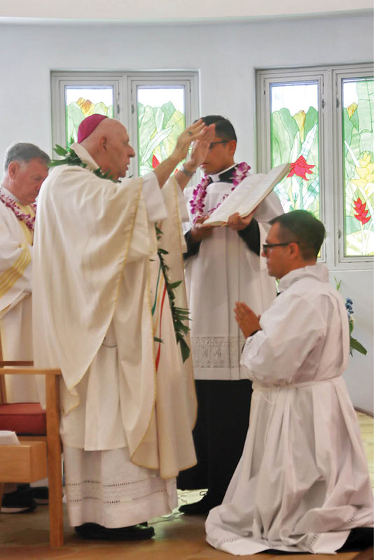 Bishop Larry Silva ordained Deacon Lawrence “Larry” Denis III last June at St. Elizabeth Church in Aiea. (Courtesy Deacon Lawrence “Larry” Denis III)